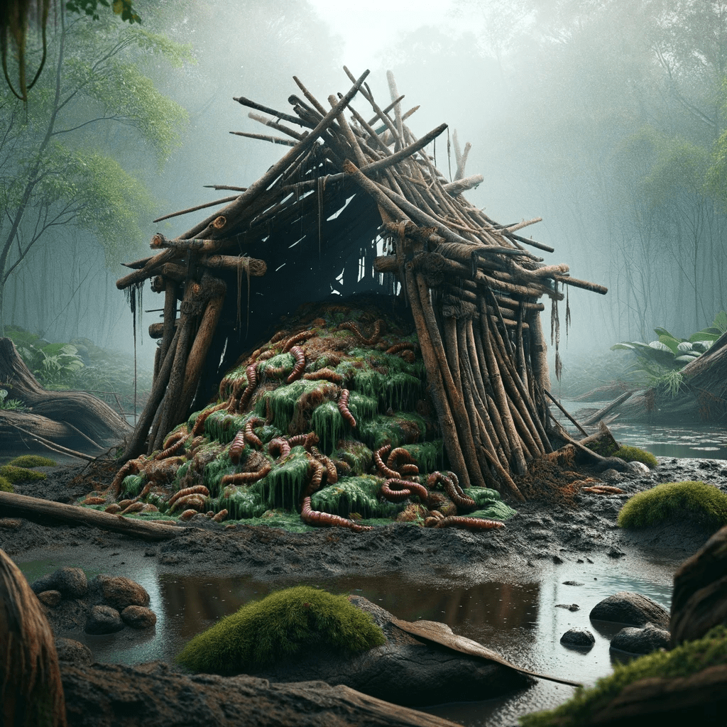 The chambers, often made of sticks and stones, built by rot orcs to prepare their food for consumption, to spoil their food and infest it with maggots.